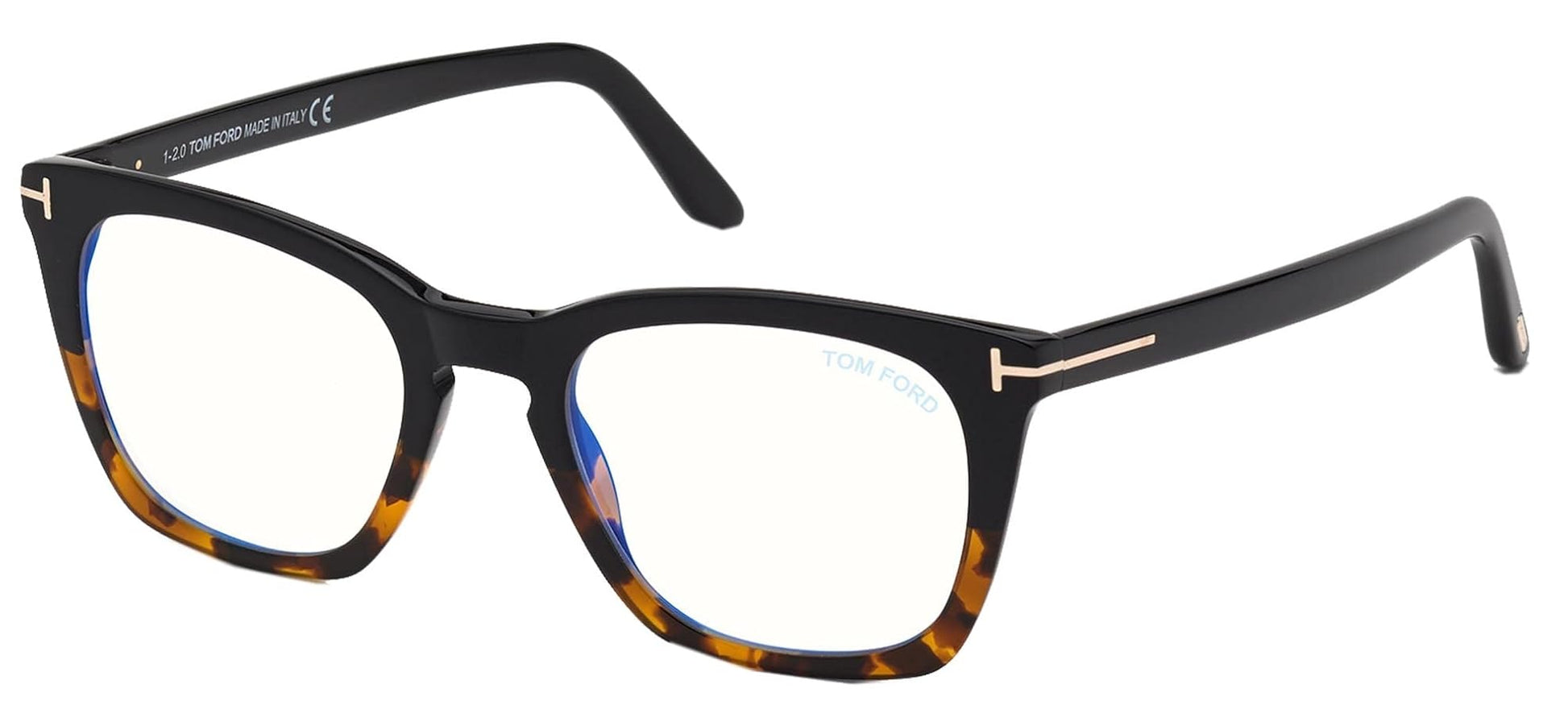 Shiny Classic Dark Havana/T Logo (005) Eyeglasses (FT5736-B 005 <50) by Tom Ford™. Size: 50-20-145, Shape: Geometric, Material: Plastic.